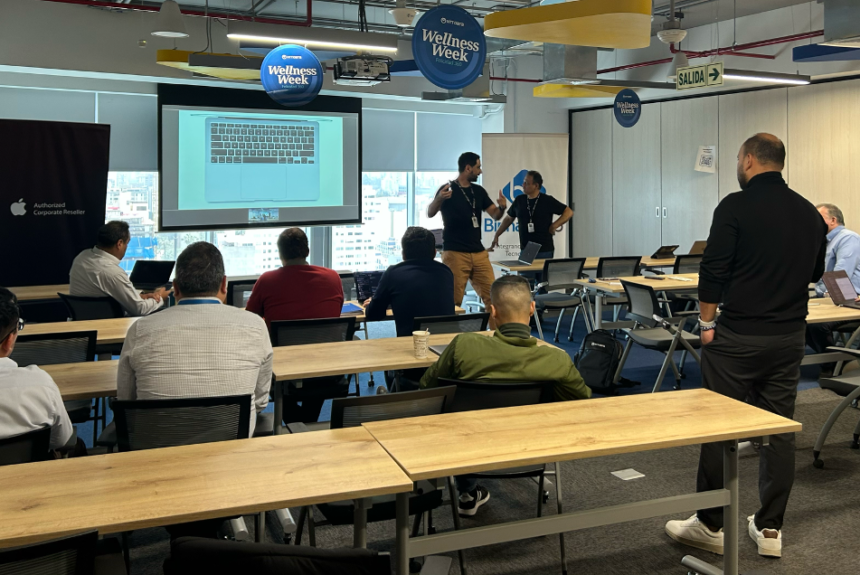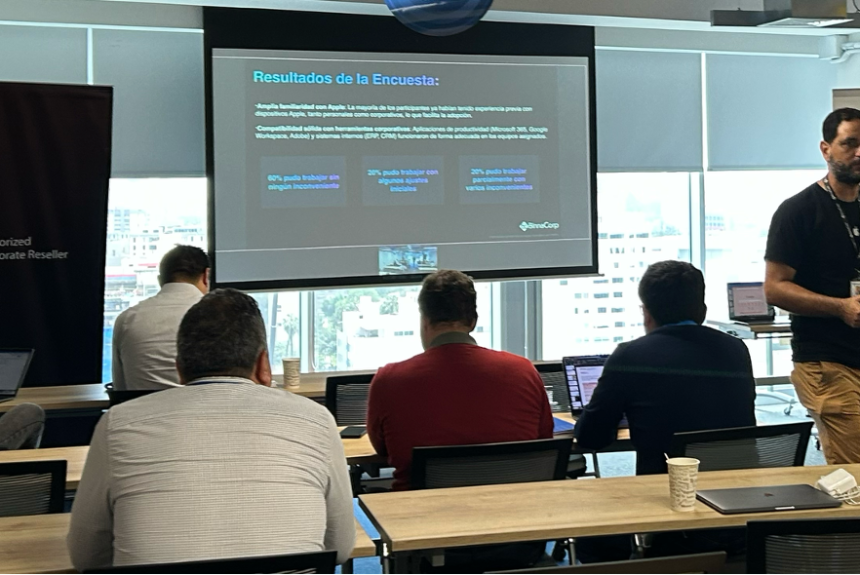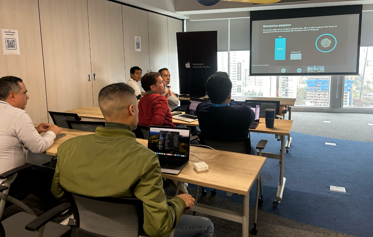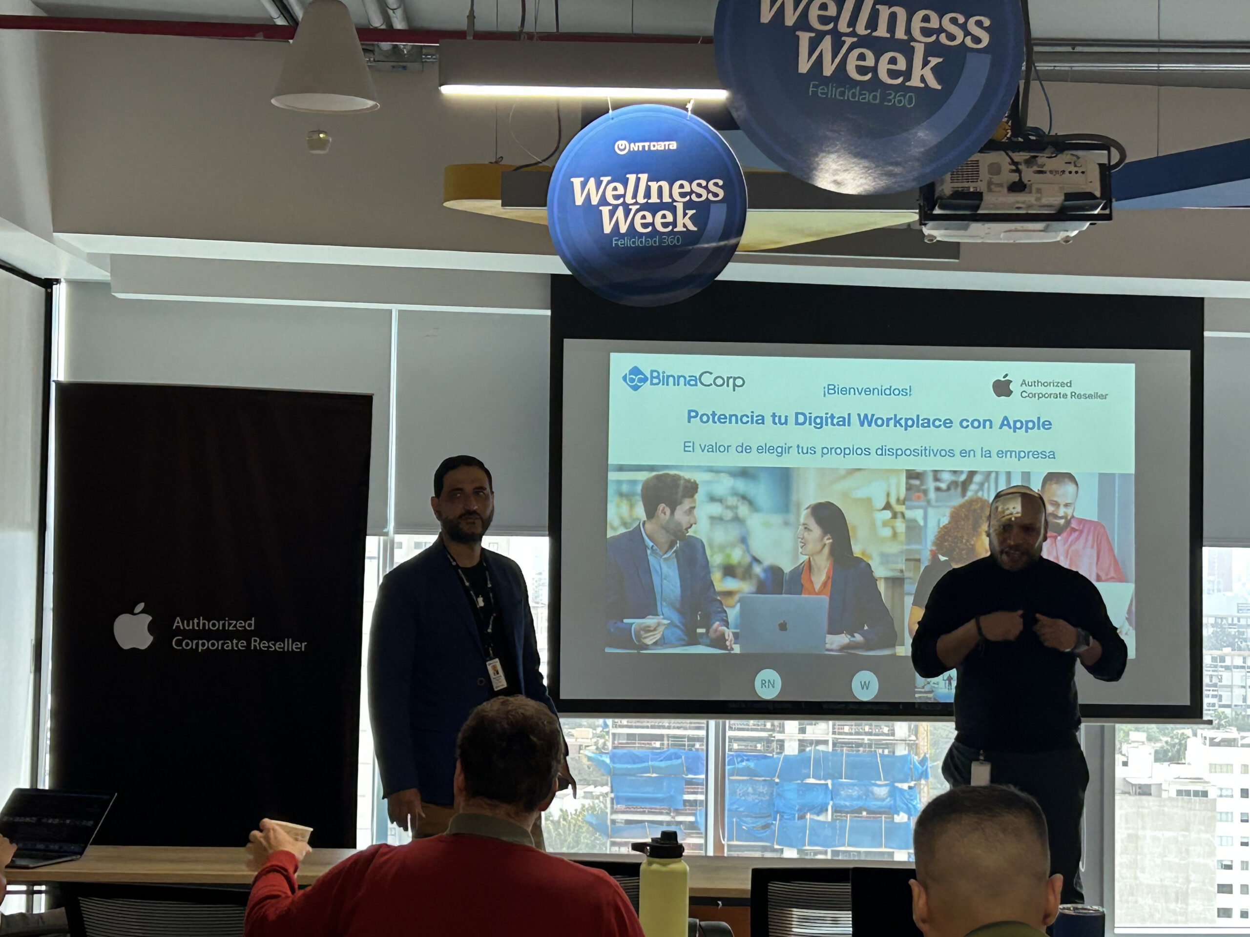 Uno de estos encuentros se se realizo con líderes de NTT Data, reuniendo a más de una docena de representantes de áreas como TI, Arquitectura, Ingeniería y Network, quienes exploraron las ventajas de incorporar la tecnología Apple en sus operaciones diarias. El evento contó con la participación de Bernardo Alayza, Gerente de Innovación y Soluciones, y William Gárate, Apple Certified IT Professional, además de la intervención remota de un especialista de Apple, quien compartió tendencias sobre productividad y seguridad en entornos corporativos.