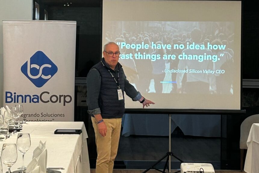 Los ponentes —Bernardo Alayza (Gerente de Innovación y Soluciones), Aldo Arciniega (Director Comercial) y Julio Valencia (Director de BinnaCorp)— junto con especialistas de Apple, presentaron una visión integral sobre la innovación, la cultura ágil y la adopción tecnológica en el contexto empresarial peruano.